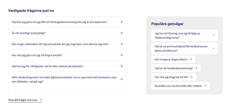 Huvudfokus för projektet var att skapa en helt ny webbplats med mål att styra över från inskickade frågor till att stärka hjälp till självhjälp. Det innebar dels ett plattformsbyte från en äldre Microsoft-plattform till en custom WordPressbas. Vi har även tagit fram en ny webbdesigndesign, omstrukturerat allt innehåll tillsammans med kund, API koppling mot Microsoft Dynamics, adderat en kraftfullare sökmotor samt en lösning för att dynamiskt hantera relaterad samt korsrefererad information.